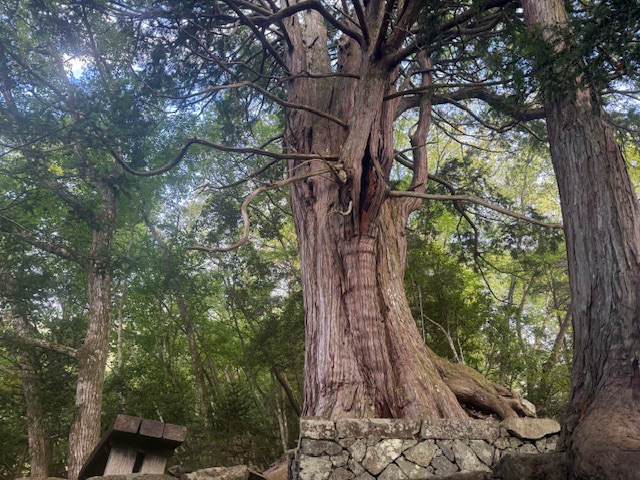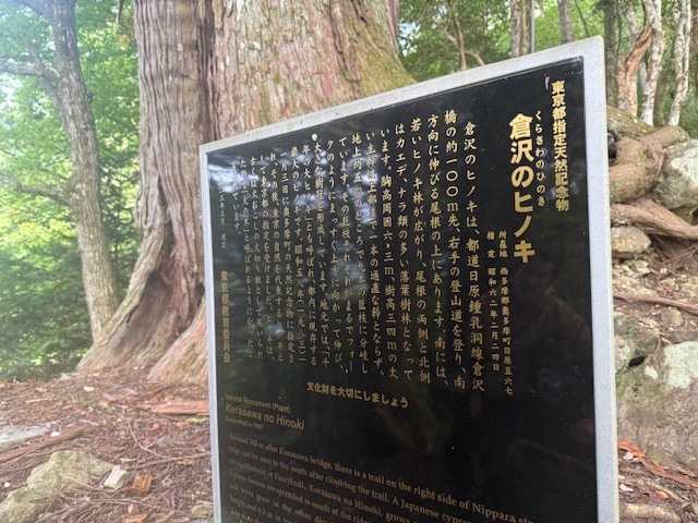 奥多摩駅からバスに揺られ、「倉沢」バス停で下車。そこから登山道を少し登ると、まず目に飛び込んでくるのが圧倒的な存在感を放つ「倉沢のヒノキ」です。